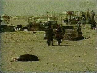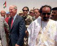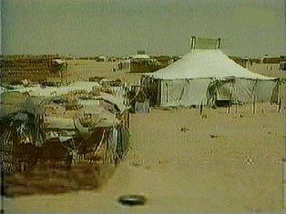 "Ils l'ont attendu avec ferveur pendant des heures, sous le soleil blanc du désert, avec le vent de sable qui piquait les yeux des enfants agitant des colombes de la paix en papier, près des militaires stoïques et des chameaux surchargés." M. Baker évoque un "espoir" pour le Sahara occidental, Marie-Claude Decamps, Le Monde, 29.4.97 |
