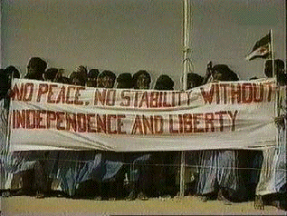 "Tens of thousands of refugees lined the dusty road into Smara welcoming Baker's convoy of jeeps like a liberating army with women ululating, children cheering, men in flowing robes giving peace signs and everyone waving the Sahara flag."
