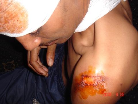 Por otro lado, el grupo de intervención policial marroquí, GUS, ha detenido a dos ex &endash; presos políticos saharauis, TARGUI MAELAININ y YAYA BACHIR, conducidos luego a las dependencias de la policía judicial en donde han sido salvajemente torturados. TARGUI MAELAININ, fue arrojado a la calle Colombia en un estado de inconsciencia, por la paliza que recibió (ver foto). YAYA BACHIR, ( ver foto) continuó detenido bajo interrogatorio, hasta ser puesto en libertad ya muy tarde. El estado físico en el que ha quedado, sin poder moverse ni hablar, ha obligado a su familia a trasladarlo de forma inmediata al hospital, donde ha sido ingresado para recibir auxilio.